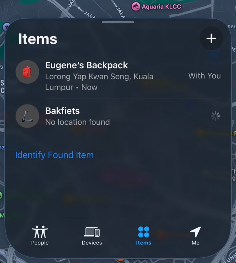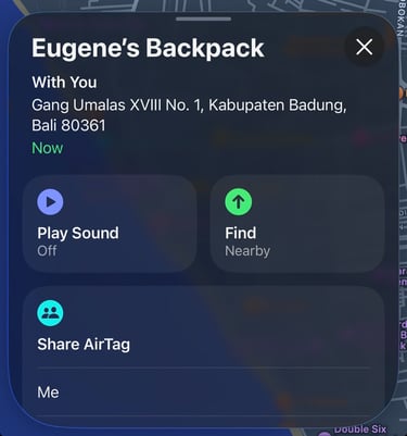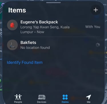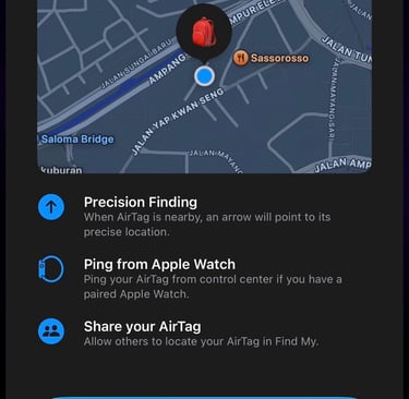This is the same app where you can see all your Apple devices. Inside the app, you’ll find a section called Items, where your AirTag appears. If you have multiple AirTags, they will all show up there, making it easy to keep track of everything in one place. When you tap on Items in the Find My app, you can see exactly where your AirTag is located. From there, you have a few helpful options. You can play a sound to help you find it nearby, share the AirTag with someone else, or tap Find to use Precision Finding and guide you directly to it.