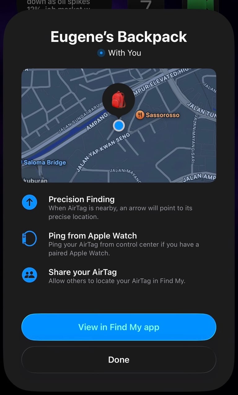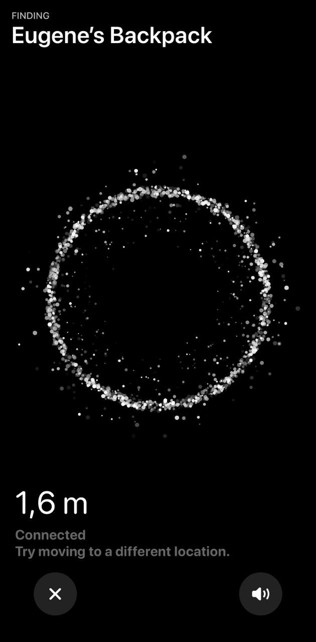When you tap Find, your iPhone helps guide you straight to your AirTag. It will show you exactly how far away you are and point you in the right direction, making it surprisingly easy to track down your lost item.
