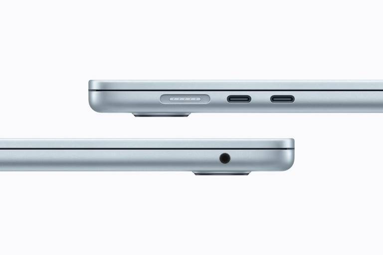 Of course, the MacBook Air still keeps what people already love about it. It’s thin, light, and built from aluminum, and it features a beautiful Liquid Retina display, a 12MP Center Stage camera, and up to 18 hours of battery life. The speakers support Spatial Audio, and you get two Thunderbolt 4 ports with support for two external displays, which is really nice if you work with a multi-monitor setup.