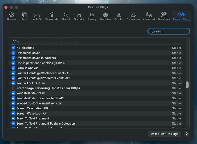 Toggle off “Prefer Page Rendering Updates near 60fps”