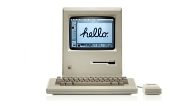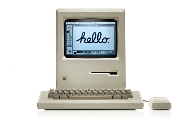 Below is a photo of the first iPhone and the original Macintosh, two iconic Apple products that helped shape the world of technology.