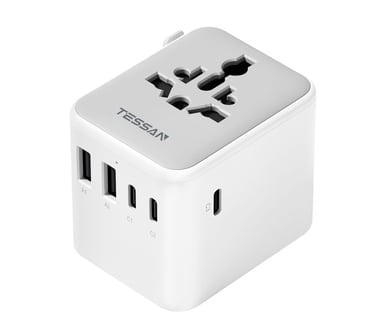 Traveling with multiple devices? The TESSAN Universal Travel Adapter makes it easy to stay charged on the go. With 3 USB-C ports, 2 USB-A ports, and plug support for over 150 countries, it’s a compact, all-in-one solution for powering up around the world.