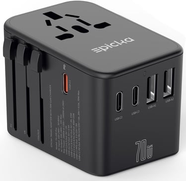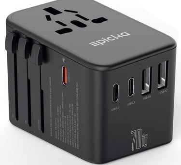 Looking for a universal travel adapter that can handle everything fast? The EPICKA TA-105 Pro is a powerful, next-gen upgrade with GaN technology and 70W PD fast charging. With 3 USB-C ports, 2 USB-A ports, and support for outlets in the US, UK, EU, and AUS, it’s built for travelers who carry serious tech. From laptops to phones, this all-in-one charger keeps your gear powered up, fast and safely — no matter where you are.